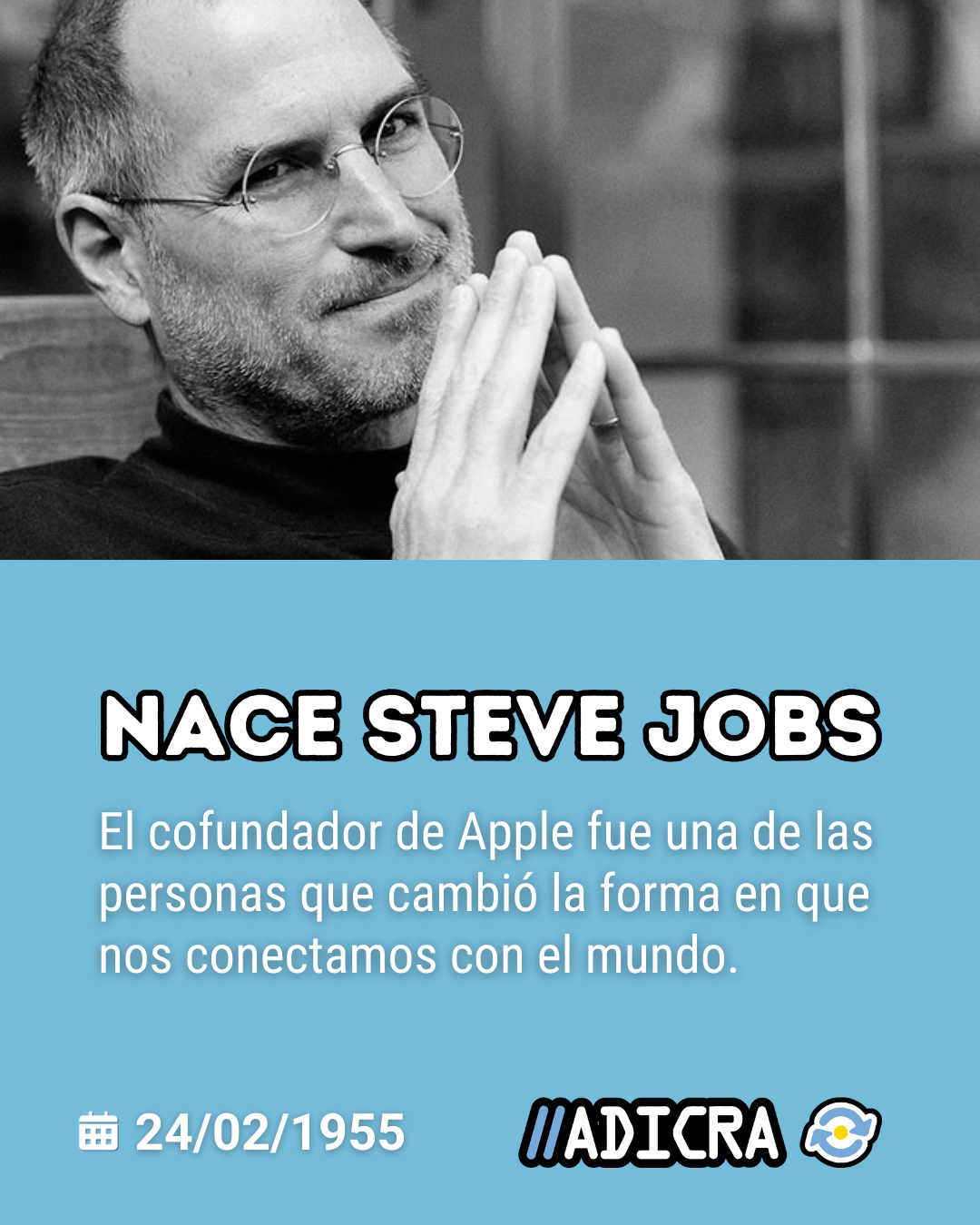 El 24 de febrero de 1955 nació en San Francisco, California, Steven Paul Jobs, cofundador de Apple y una de las figuras centrales de la Revolución Informática. Su vida y obra representan la unión entre la ingeniería, el diseño industrial y las humanidades, estableciendo los estándares de la computación personal y móvil que rigen en la actualidad.